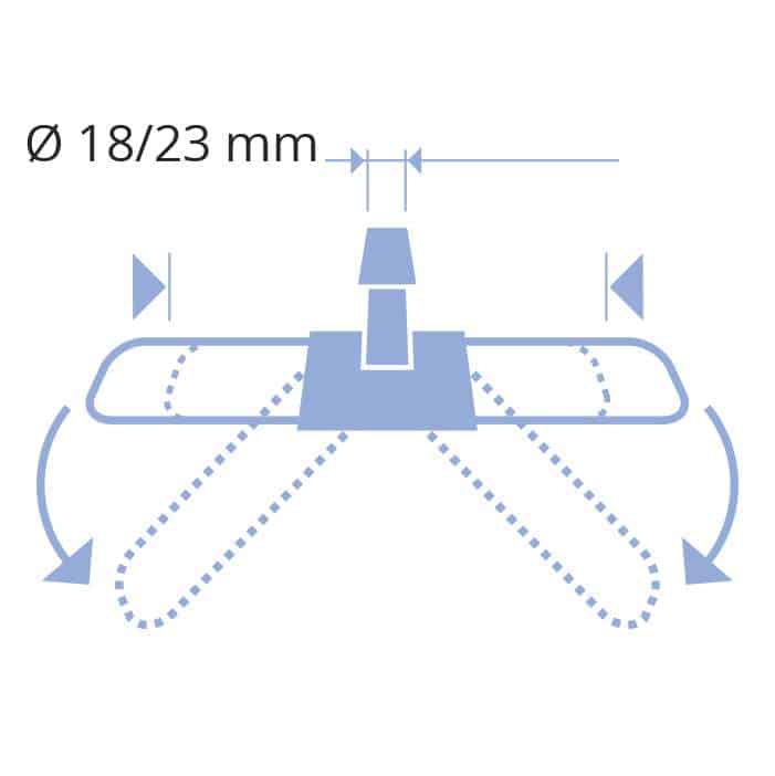 The dust mop head frame is compatible with any handle with a hole diameter of 18 to 23 mm, offering versatility in handle options.