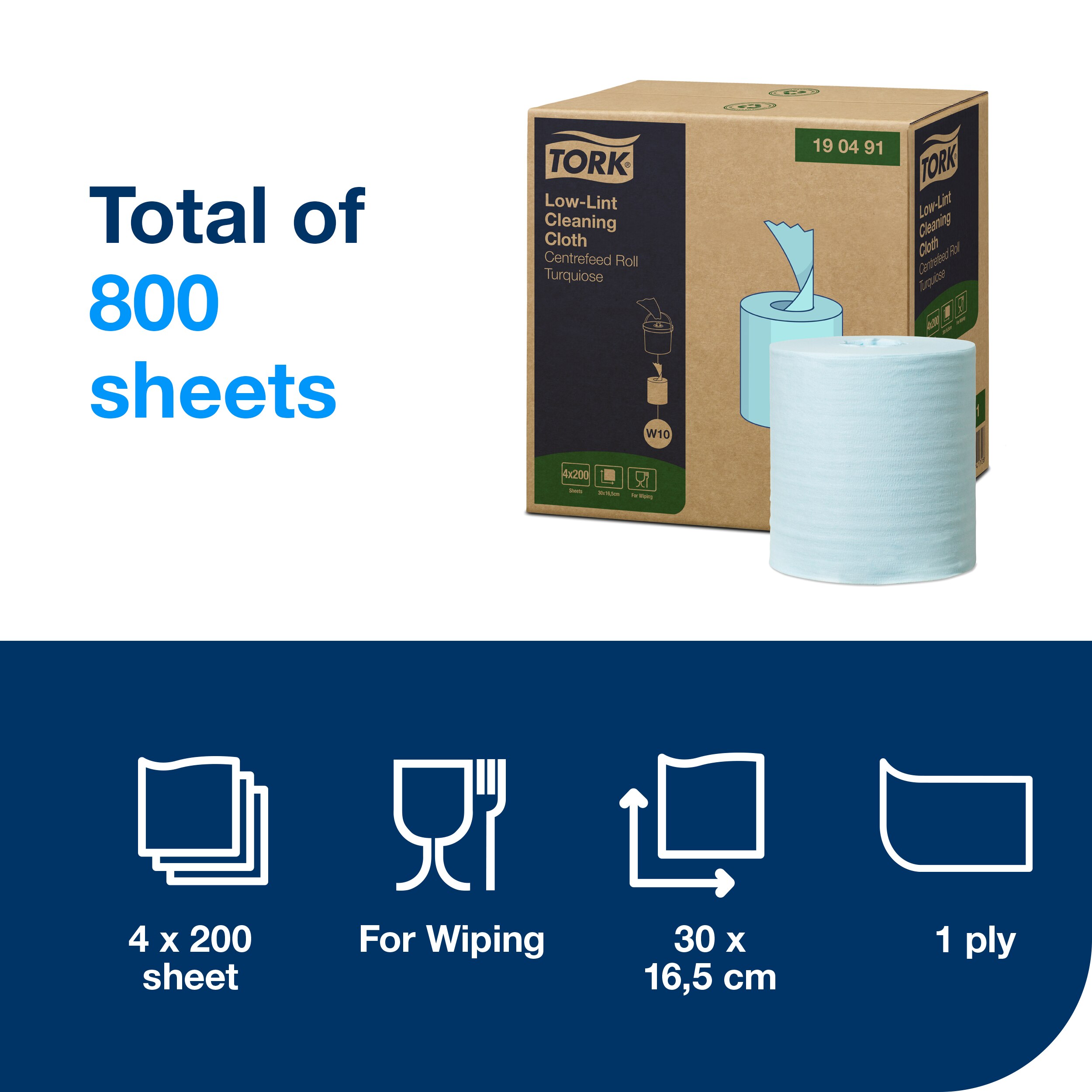 Tork Low-Lint Cleaning Cloth Refills Turquoise W10, 4 x 200 Cloths