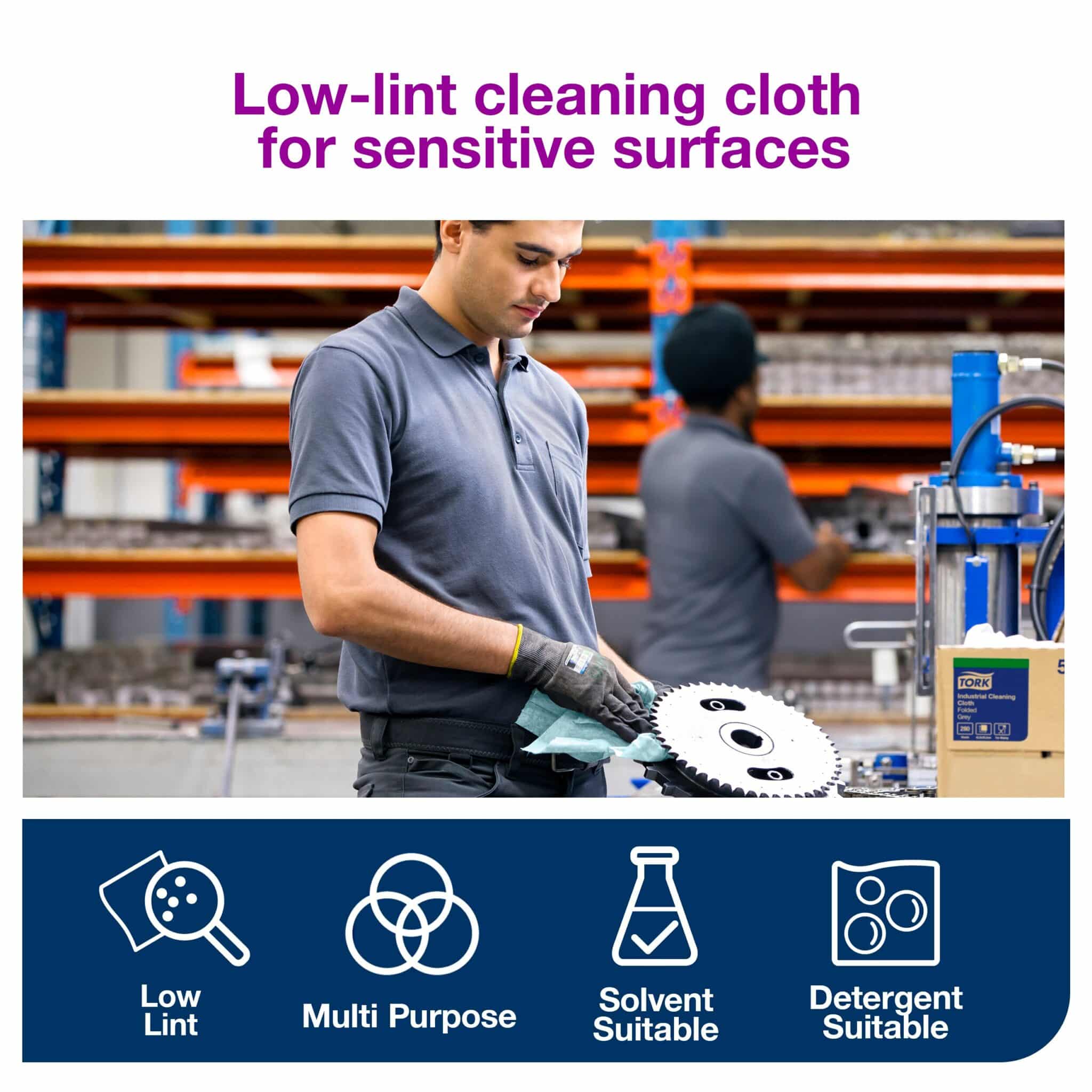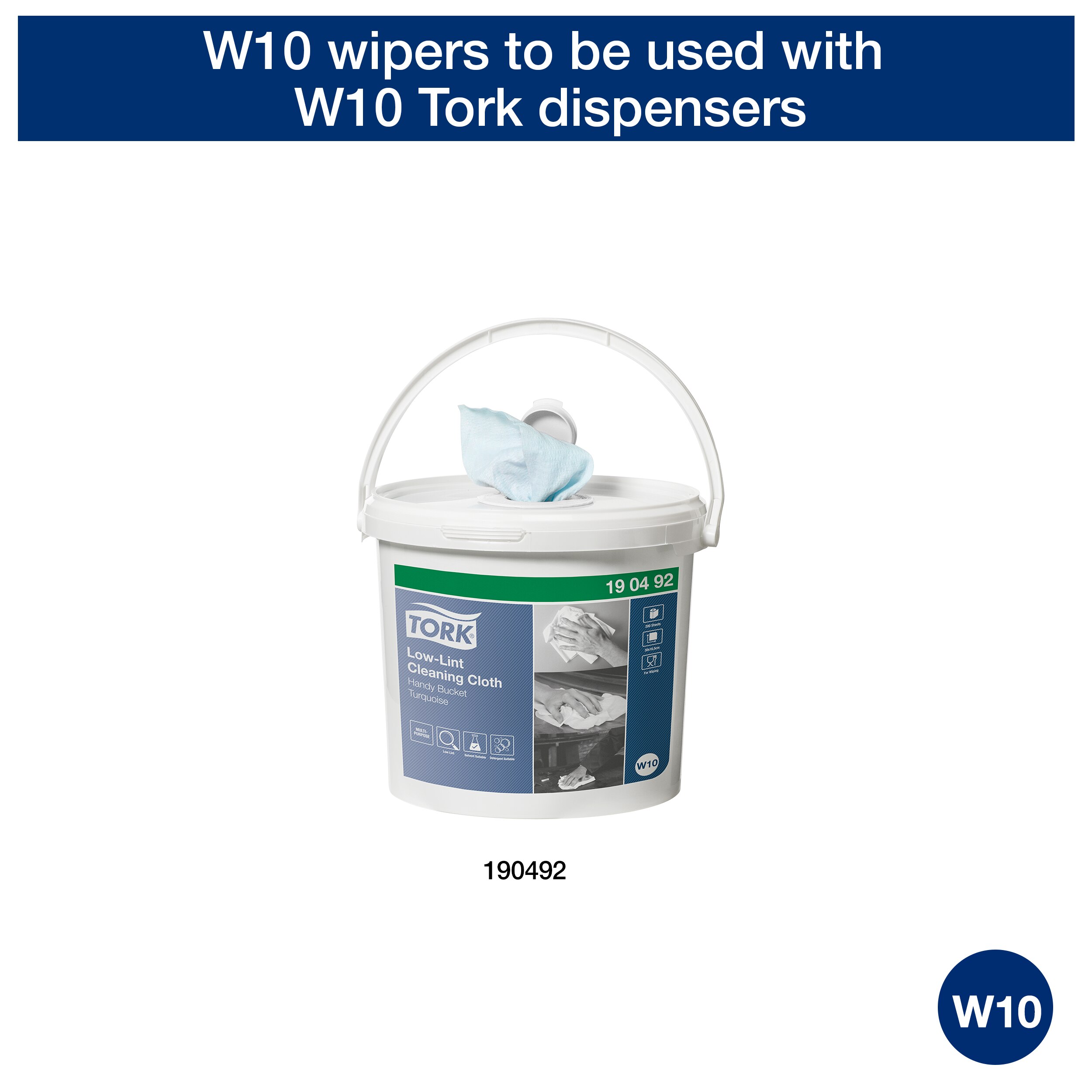 + Strong and flexible multipurpose cloth + Suitable for use with most solvents, disinfectants and detergents + Low-lint for sensitive surfaces + Handy bucket allows you to make long-lasting wet wipesCompatible with Tork W10 dispensers.